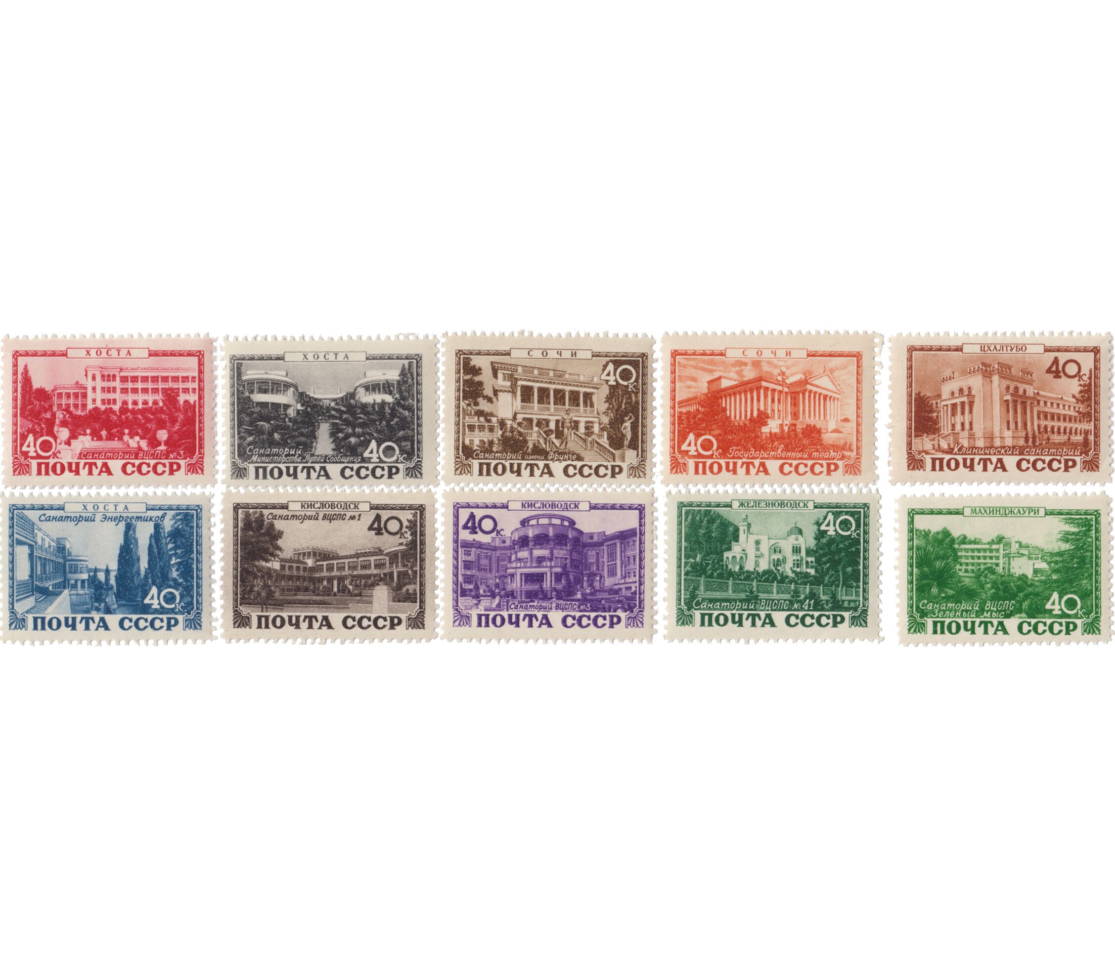 10 почтовых марок «Курорты» СССР 1949