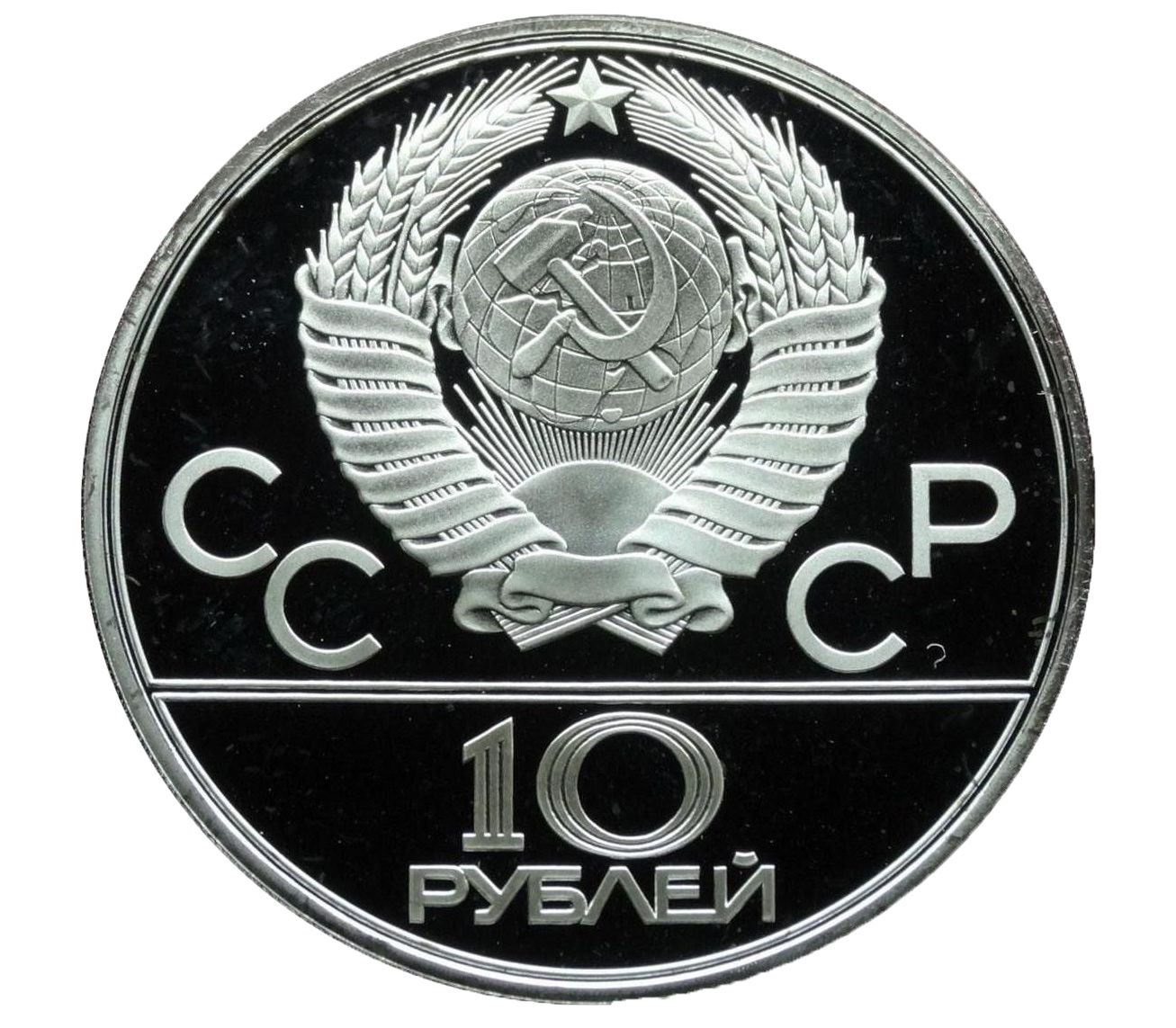 Серебряная монета 10 рублей 1978 «Олимпиада 80 — Прыжки с шестом» ЛМД