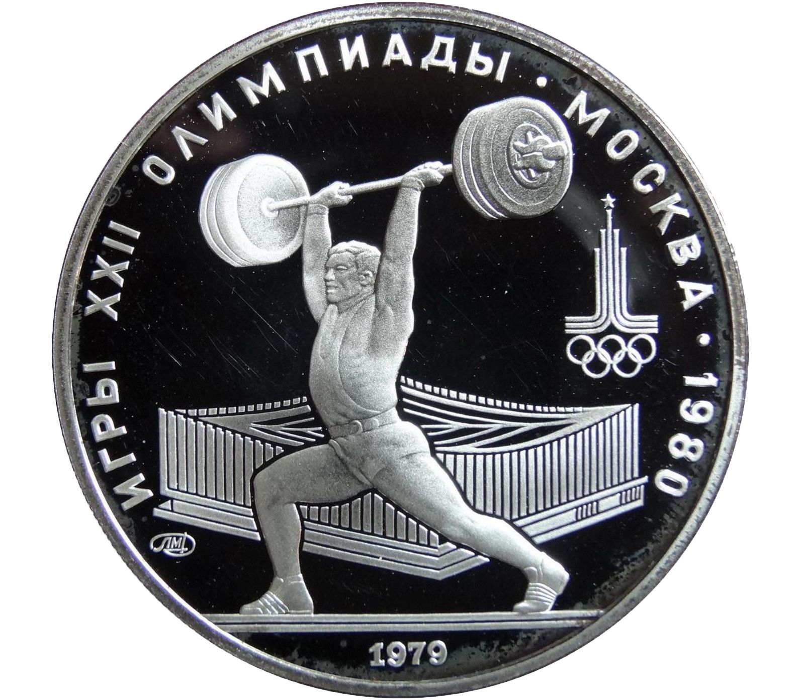 Серебряная монета 5 рублей 1979 «Олимпиада 80 — Штанга» ММД