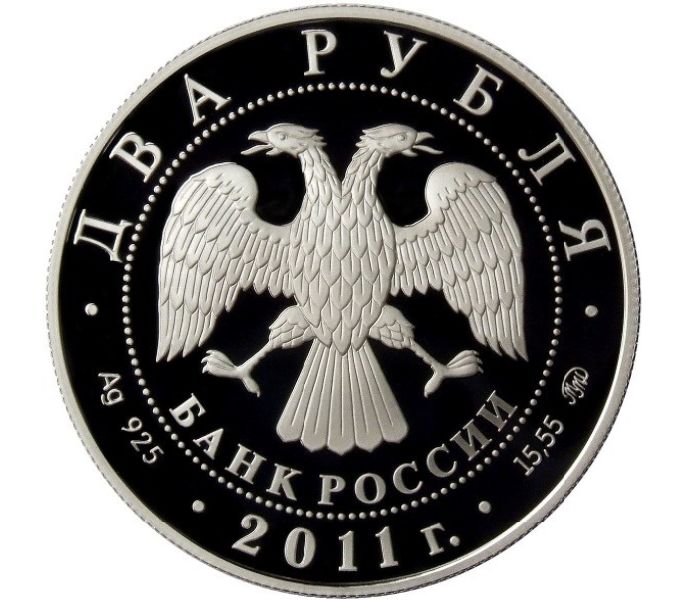 Серебряная монета 2 рубля 2011 «Шахматист М.М. Ботвинник - 100-летие со дня рождения»