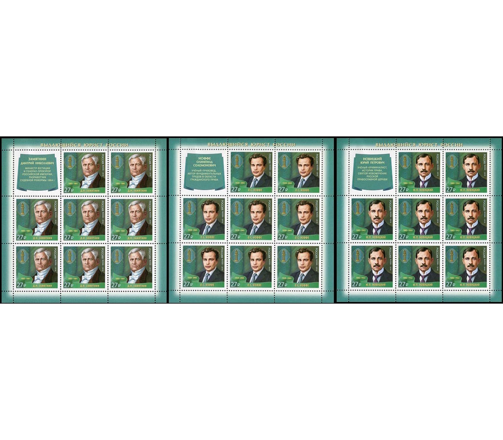 3 листа «Выдающиеся юристы России. Замятин, Иоффе, Новицкий» Россия 2018