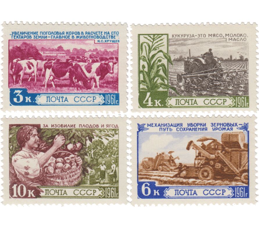 4 почтовые марки «За изобилие сельскохозяйственных продуктов!» СССР 1961