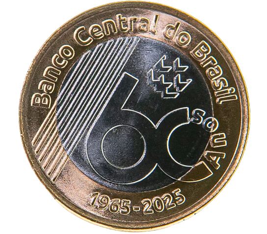 Памятная монета достоинством 1 реал, выпущенная в честь 60-летия Центрального банка Бразилии. Всего было отчеканено 23 168 000 монет, которые можно использовать для обычных покупок и транзакций.
