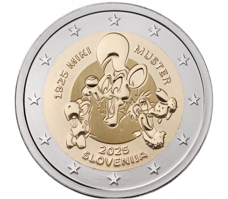 Монета 2 евро 2025 «100 лет со дня рождения словенского мультипликатора и иллюстратора Мики Мустера» Словения