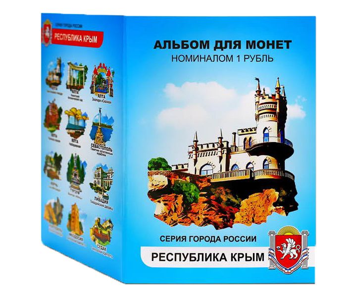 Прекрасный подарок для нумизмата! Цветные монеты с достопримечательностями Крыма в ярком альбоме. Альбом входит в серию «Города России».